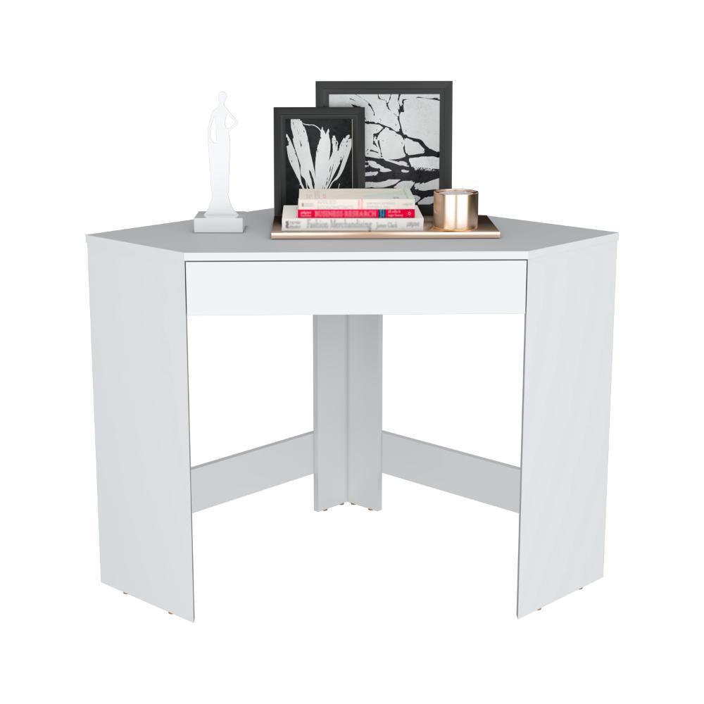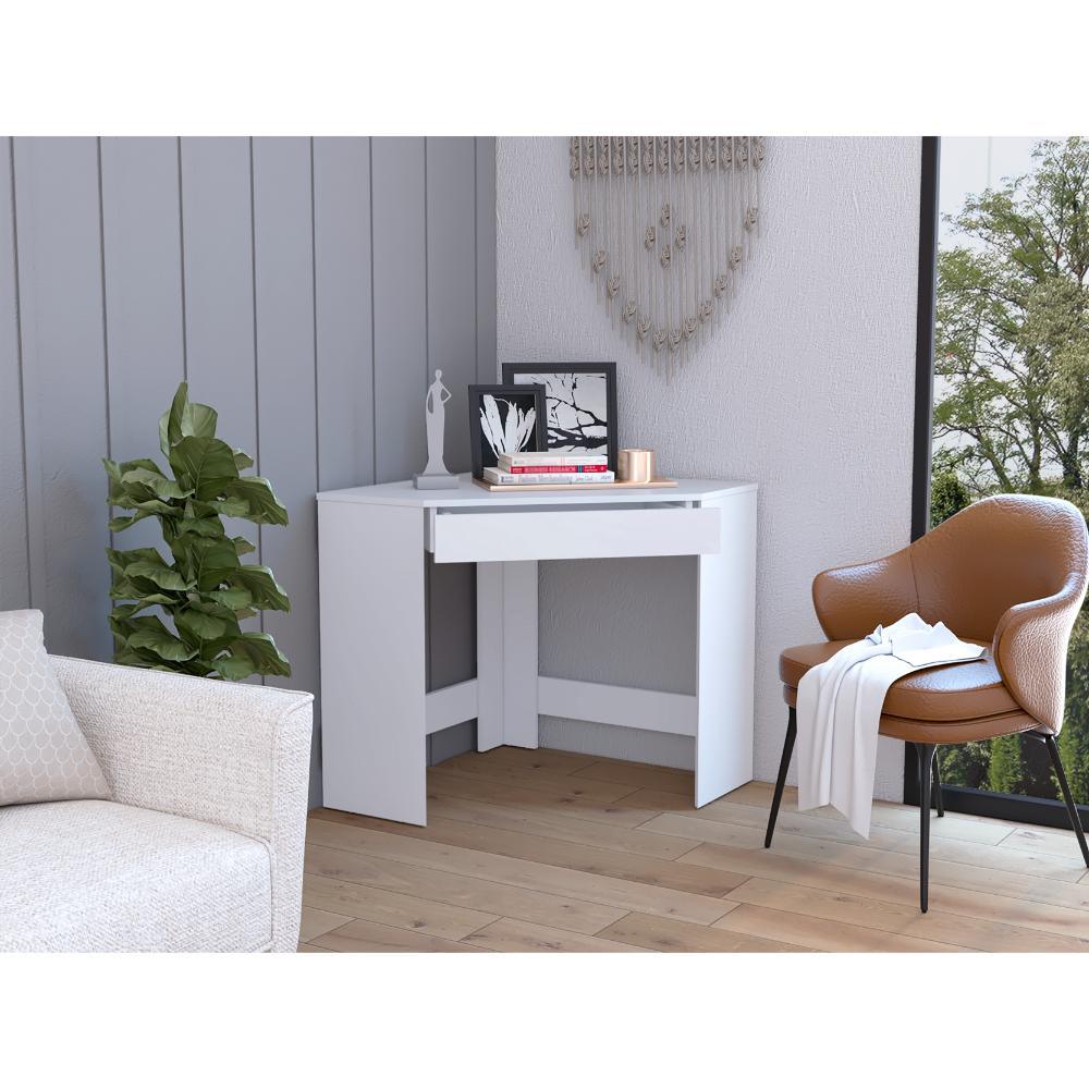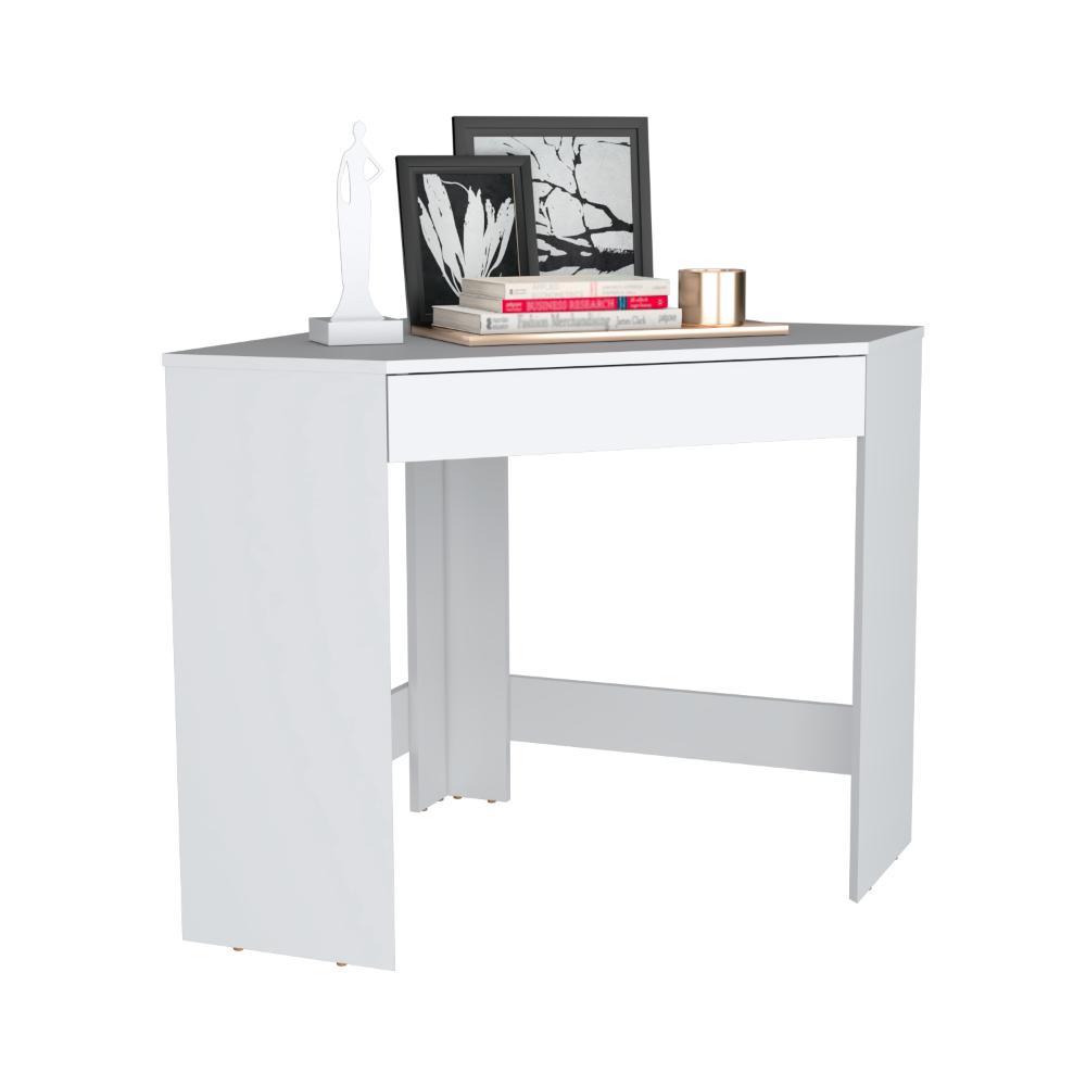 Escritorio Esquinero Amity, Blanco, con un cajón ZF