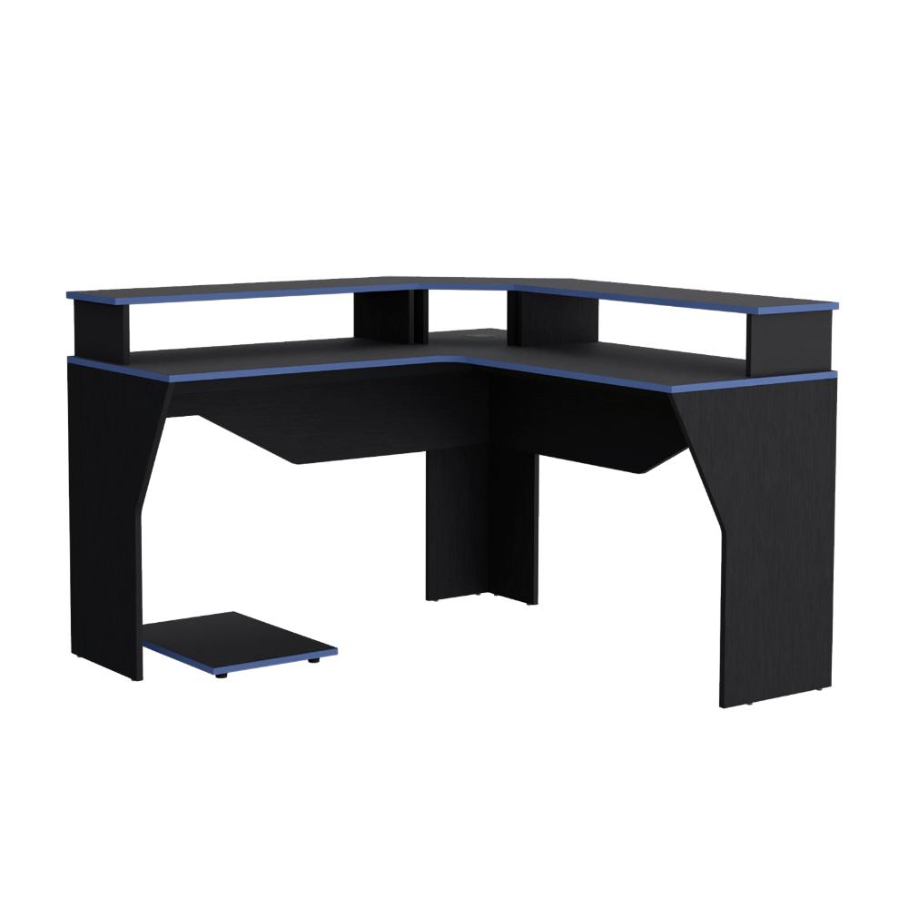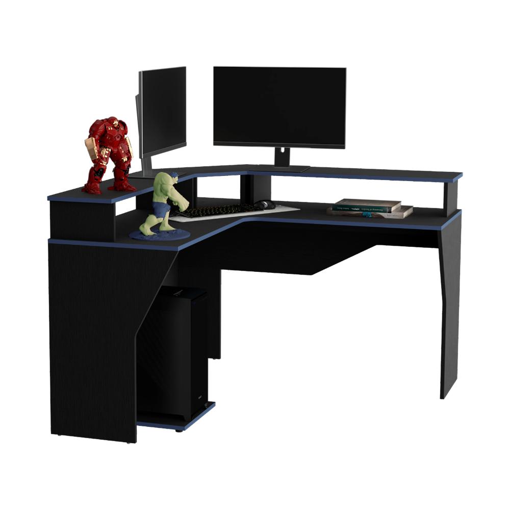 Escritorio Gamer, con espacio para diferentes equipos, borde Azul y diseño moderno.