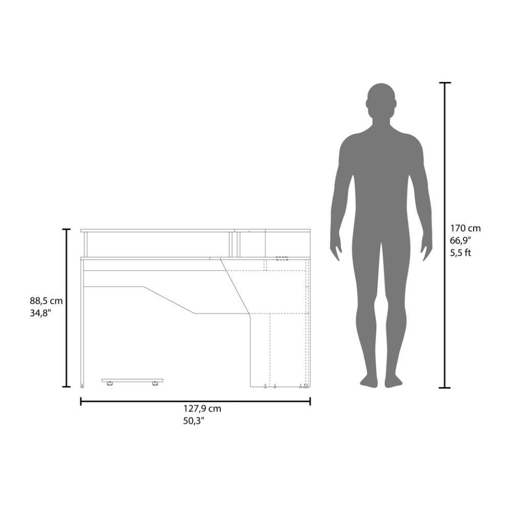 Escritorio Gamer Invictor, Wengue y Azul, con Espacio Adicional para Pantallas