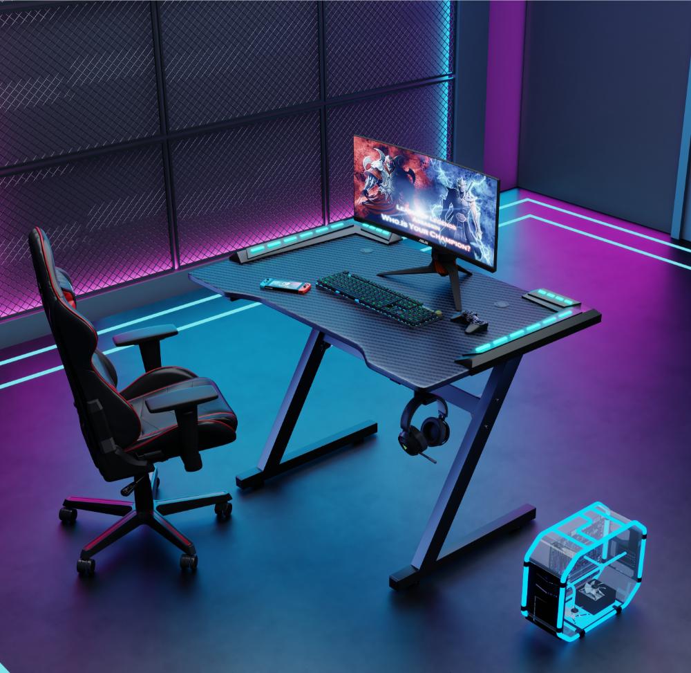 Escritorio Gamer Silver, Negro, Estructura Metalica