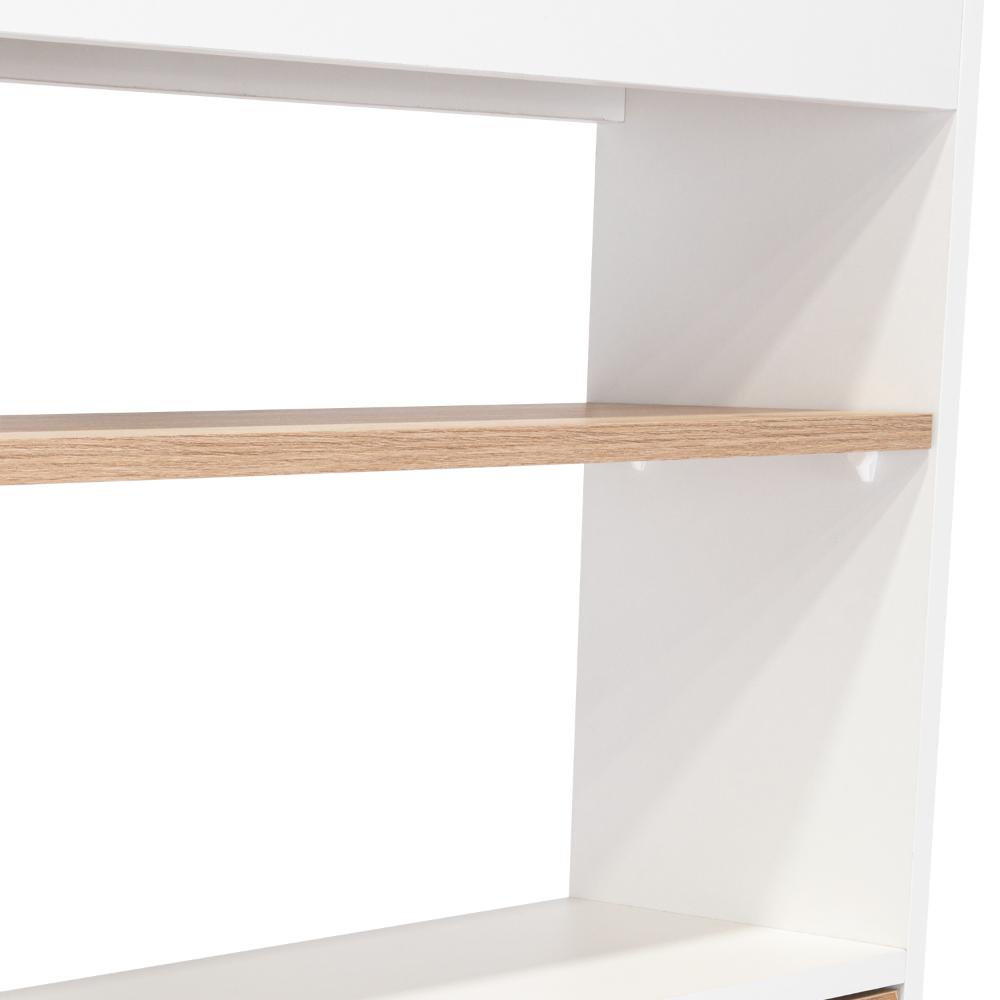 Elaborado en Madera aglomerada MDP, recubierta con láminas melamínicas de excelente calidad, en color Café Claro y Blanco Duqueza.