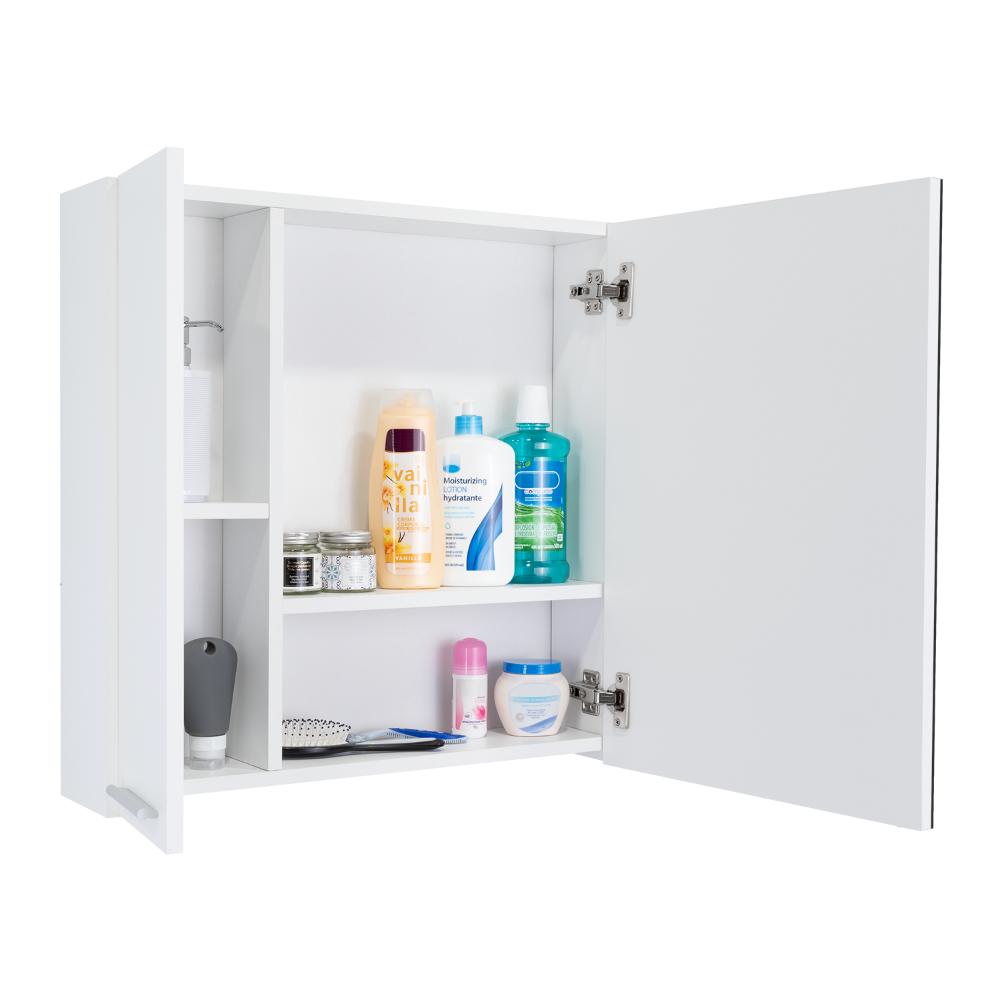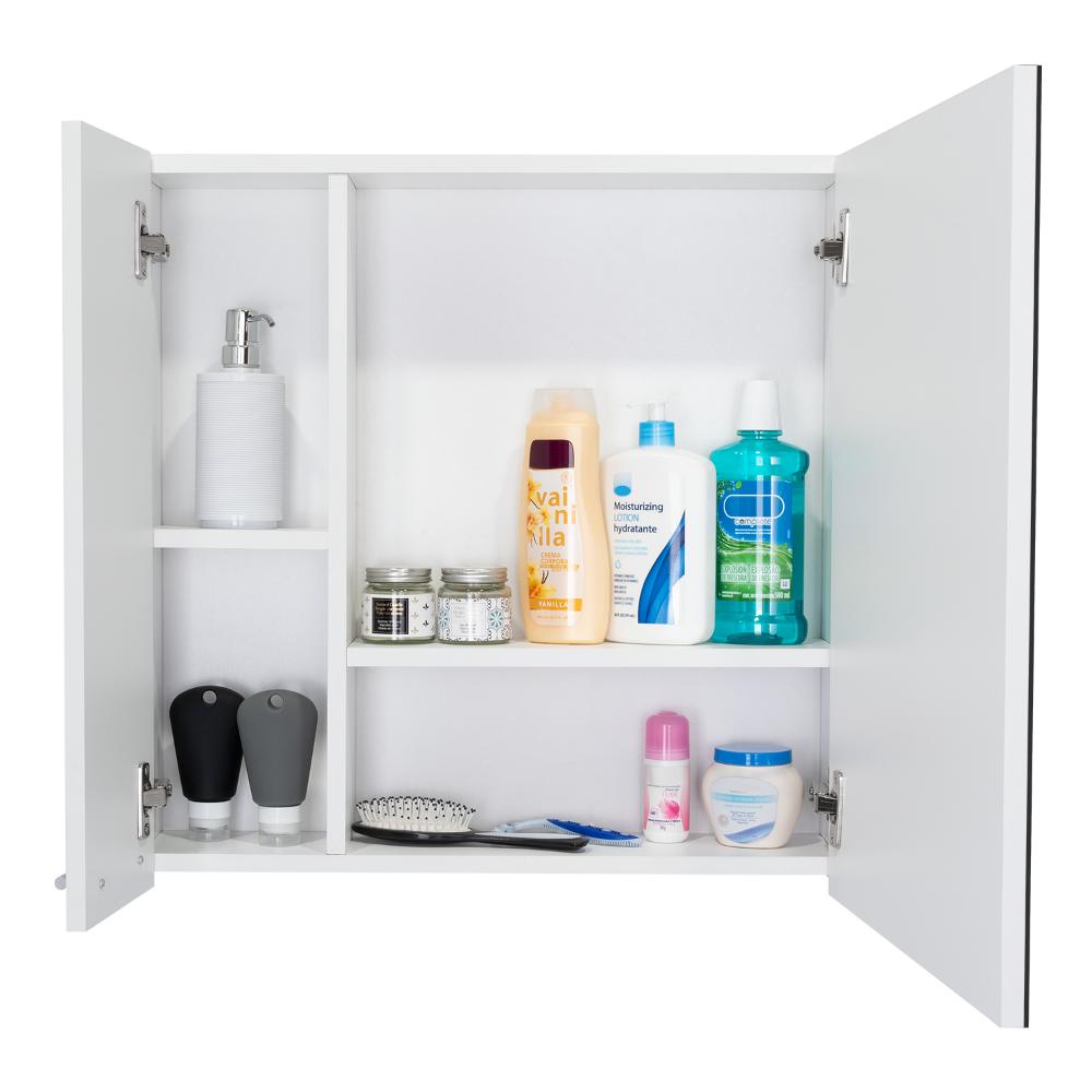 Gabinete de Baño Depp, Blanco, con Espejo Biselado de Buen Tamaño y Varios Entrepaños