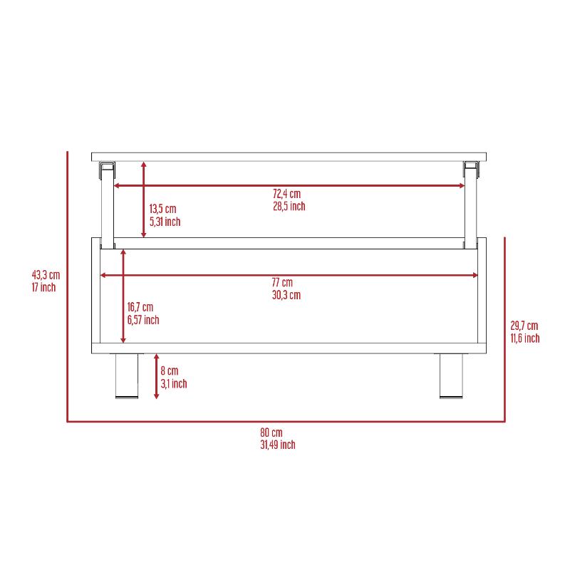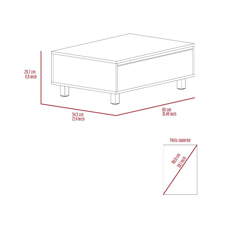 Mesa de Centro, con un cajón interno, patas metálicas.
