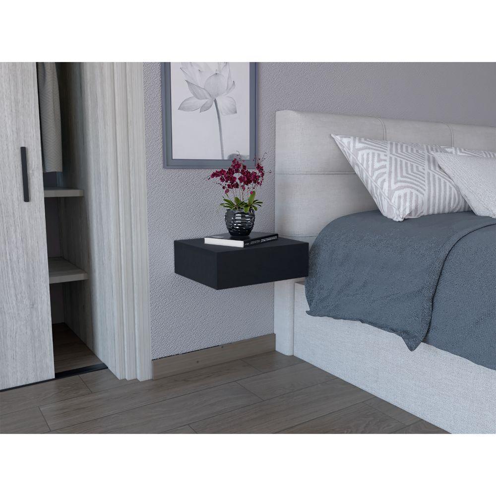 Mesa de Noche Flotante, de fácil instalación y armado, un cajón, diseño minimalista, superficie para ubicar objetos.