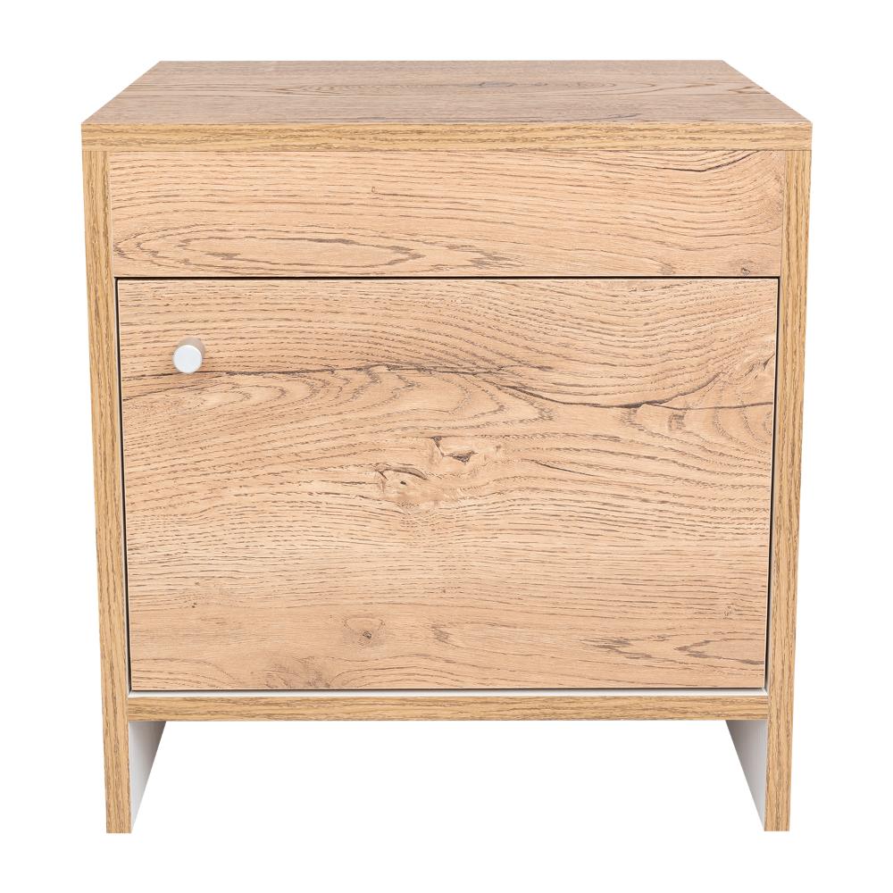 Mesa de Noche Tutto, Macadamia y Blanco, con Cajón Para Guardar Objetos Ideal Para Espacios Reducidos