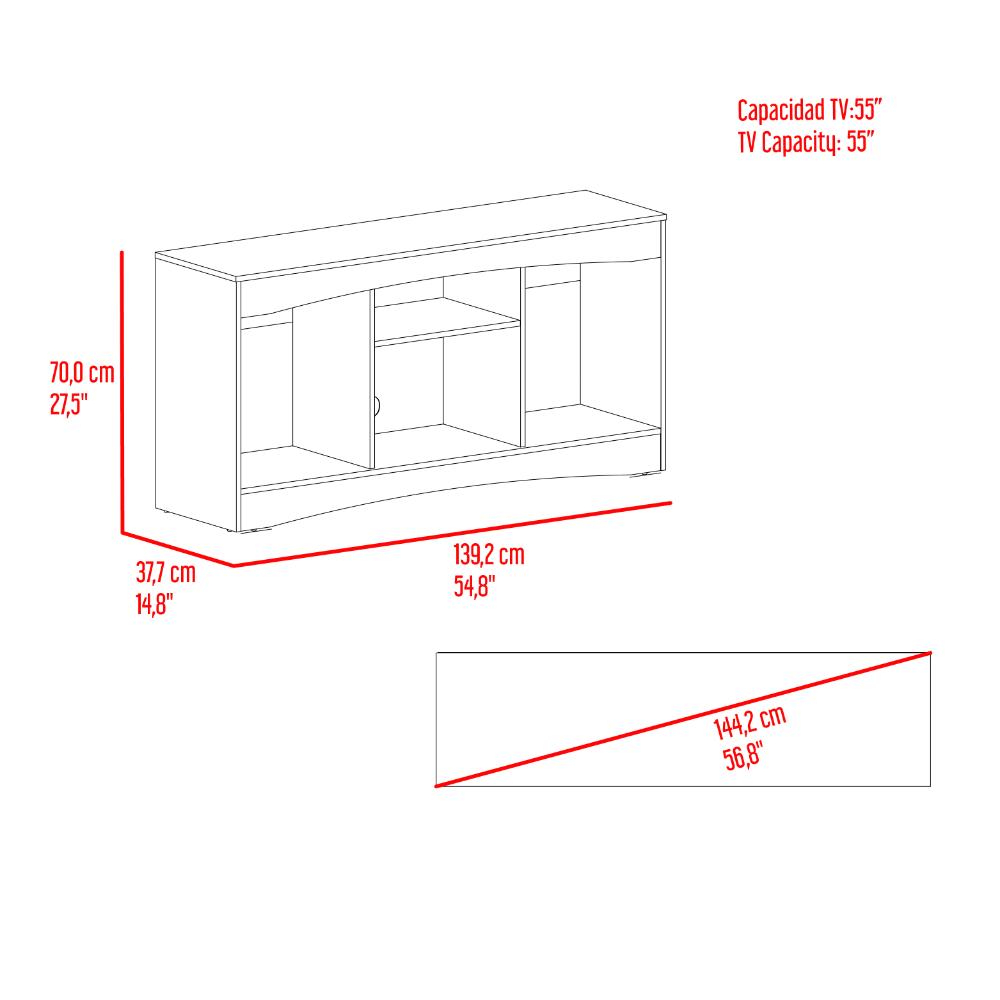Mesa para TV, con Espacio para ubicar equipos de audio y video, espacio modular, con espacio para ubicar objetos decorativos, capacidad de tv hasta 55", es de facil instalación.