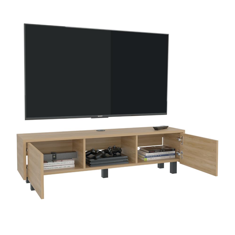 Mesa de TV Flotante, con superficie para objetos decorativos, equipos de audio y video, y dos puertas abatibles