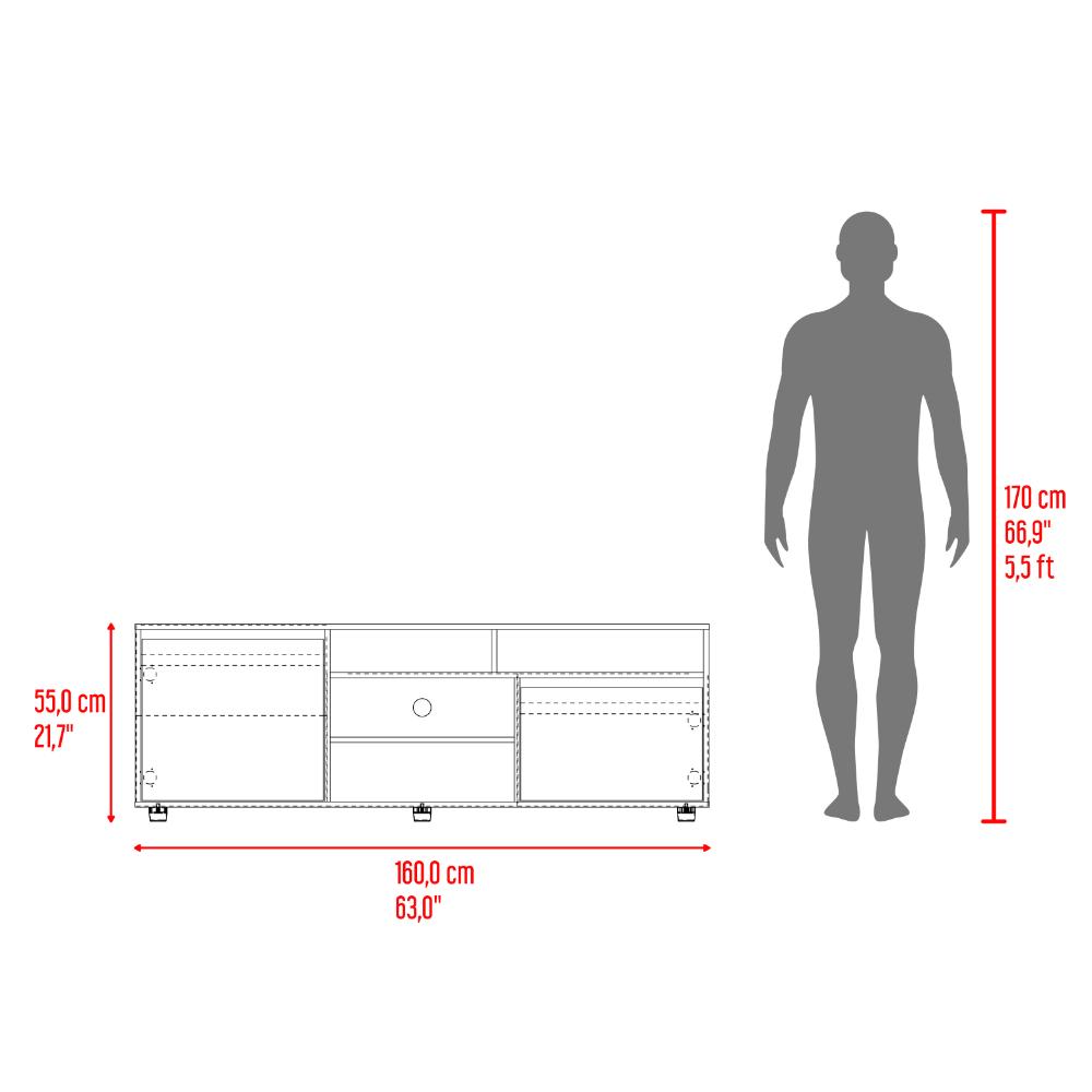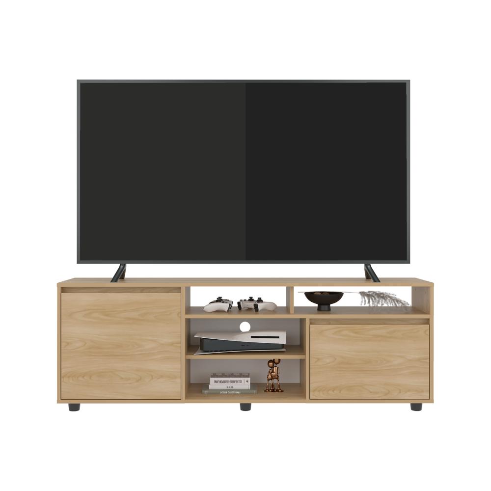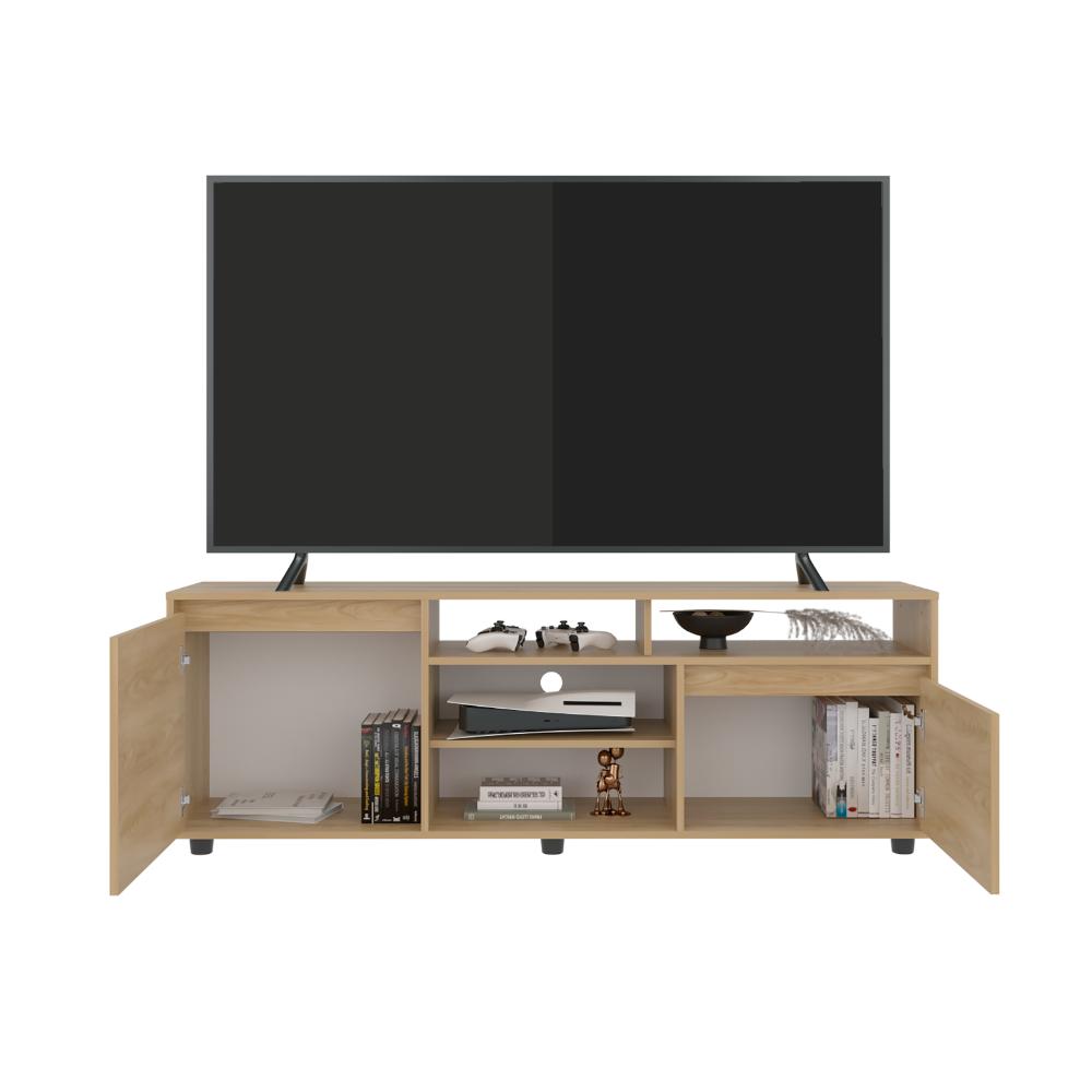 Mesa para TV con superficie para objetos decorativos, equipo de audio y video, 2 puertas abatibles, capacidad de tv hasta 65", es de ffacil instalación.