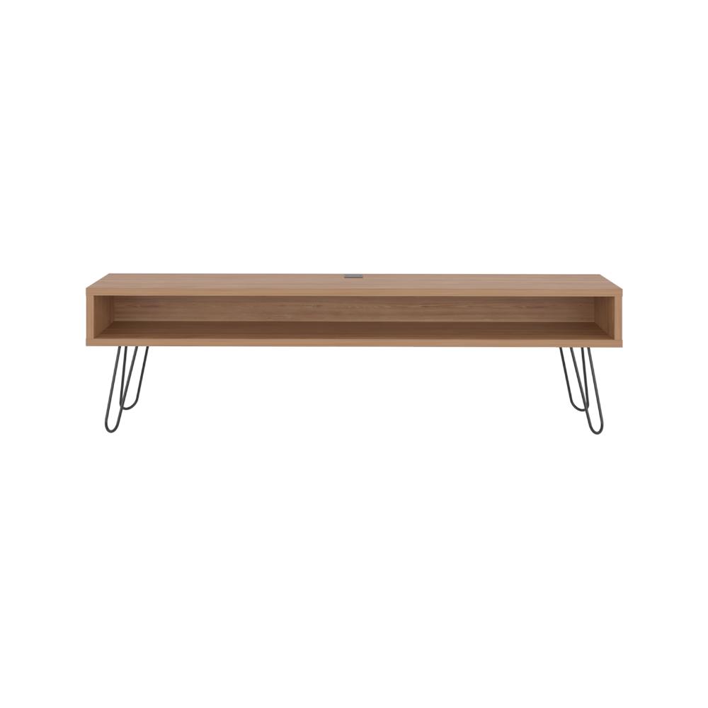 Mesa Para Tv Ralf, Miel, con patas metálicas y espacio de tv hasta 70 pulgadas