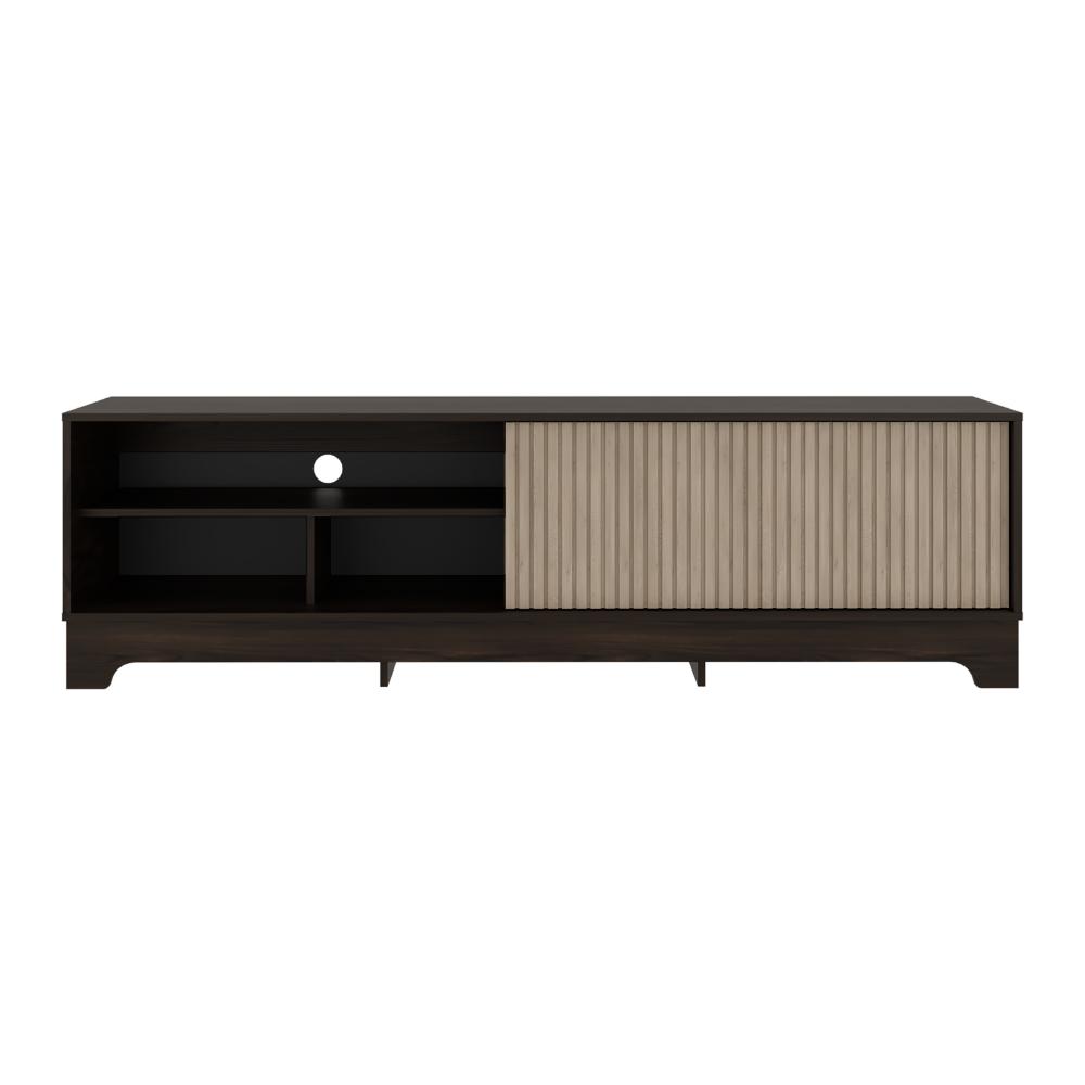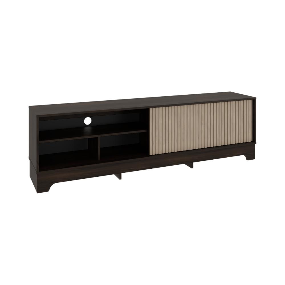 Centro de Entretenimiento con una puerta corrediza, combinación de colores, combinación de colores, y es de facil instalación.