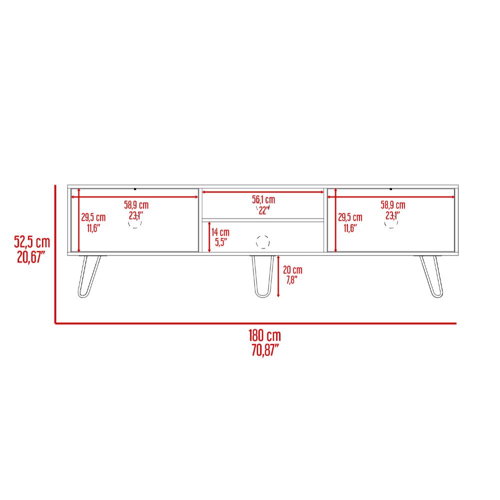 Mesa para TV, para TV de 80'' máximo, espacios inferiores para poner equipos de audio y video y puerta batiente.