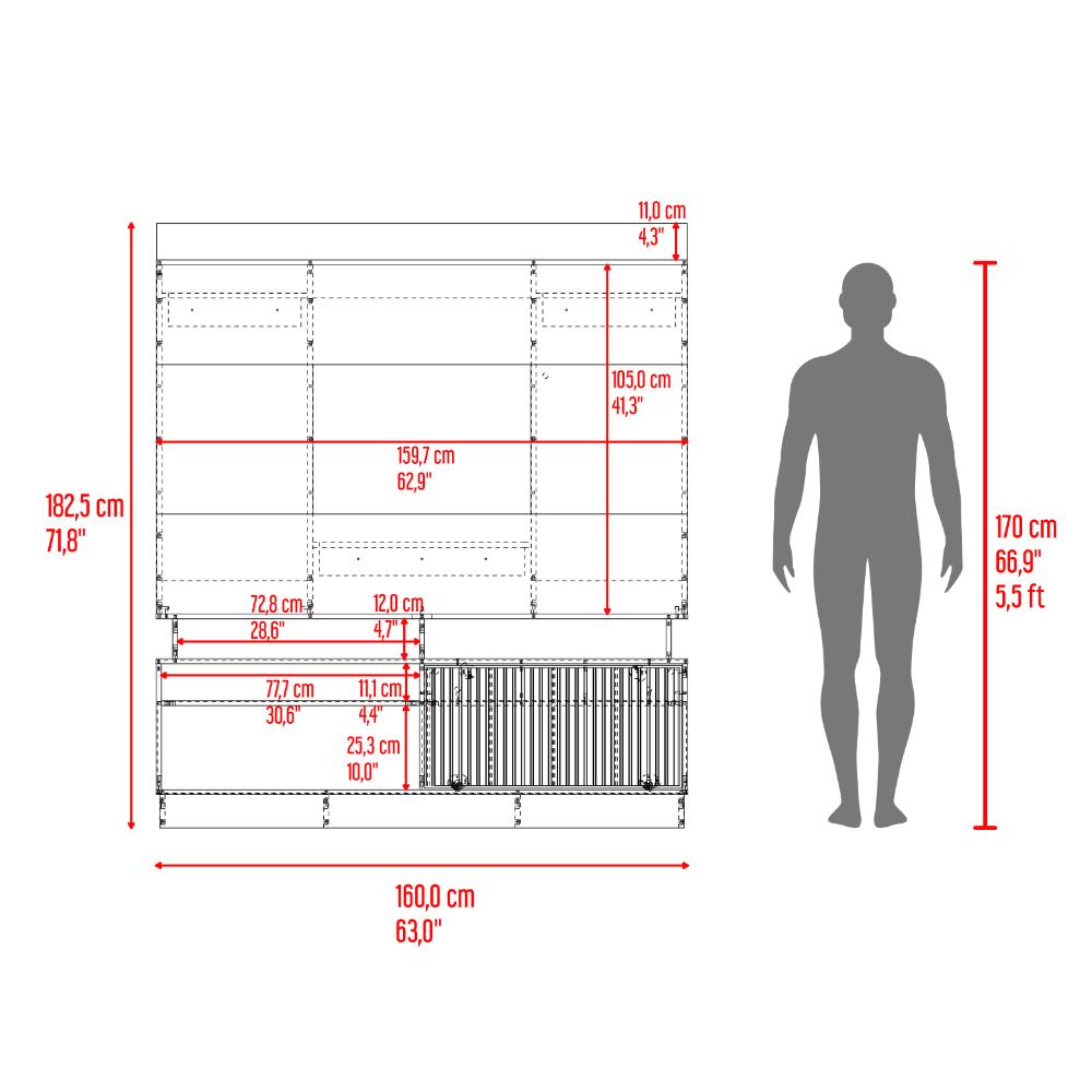 Elaborado en Madera aglomerada MDP, recubierta con láminas melamínicas de excelente calidad, en color Blanco Duqueza y Bardolino.