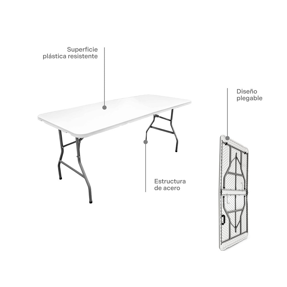 Mesa Plegable Plástica Eco Tipo Portafolio de 180 cm, Blanco
