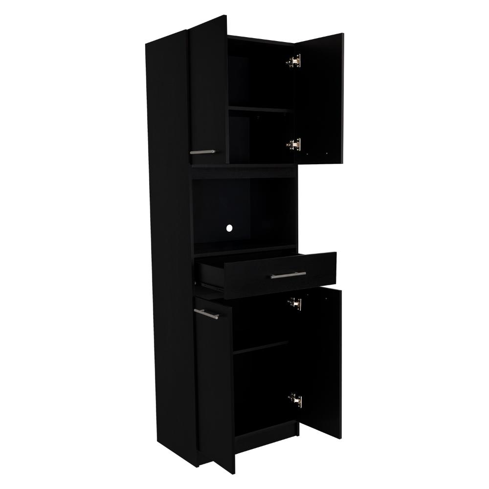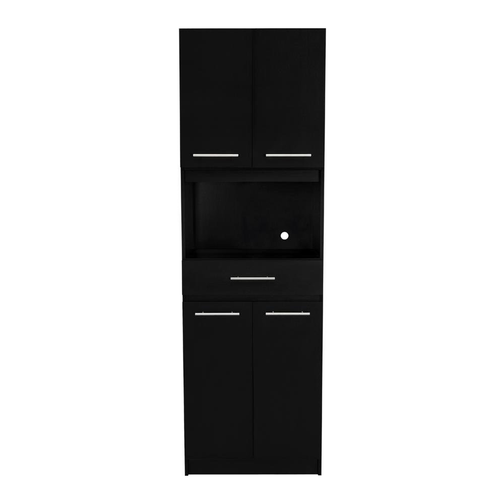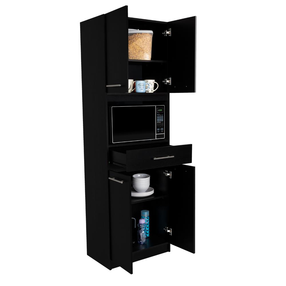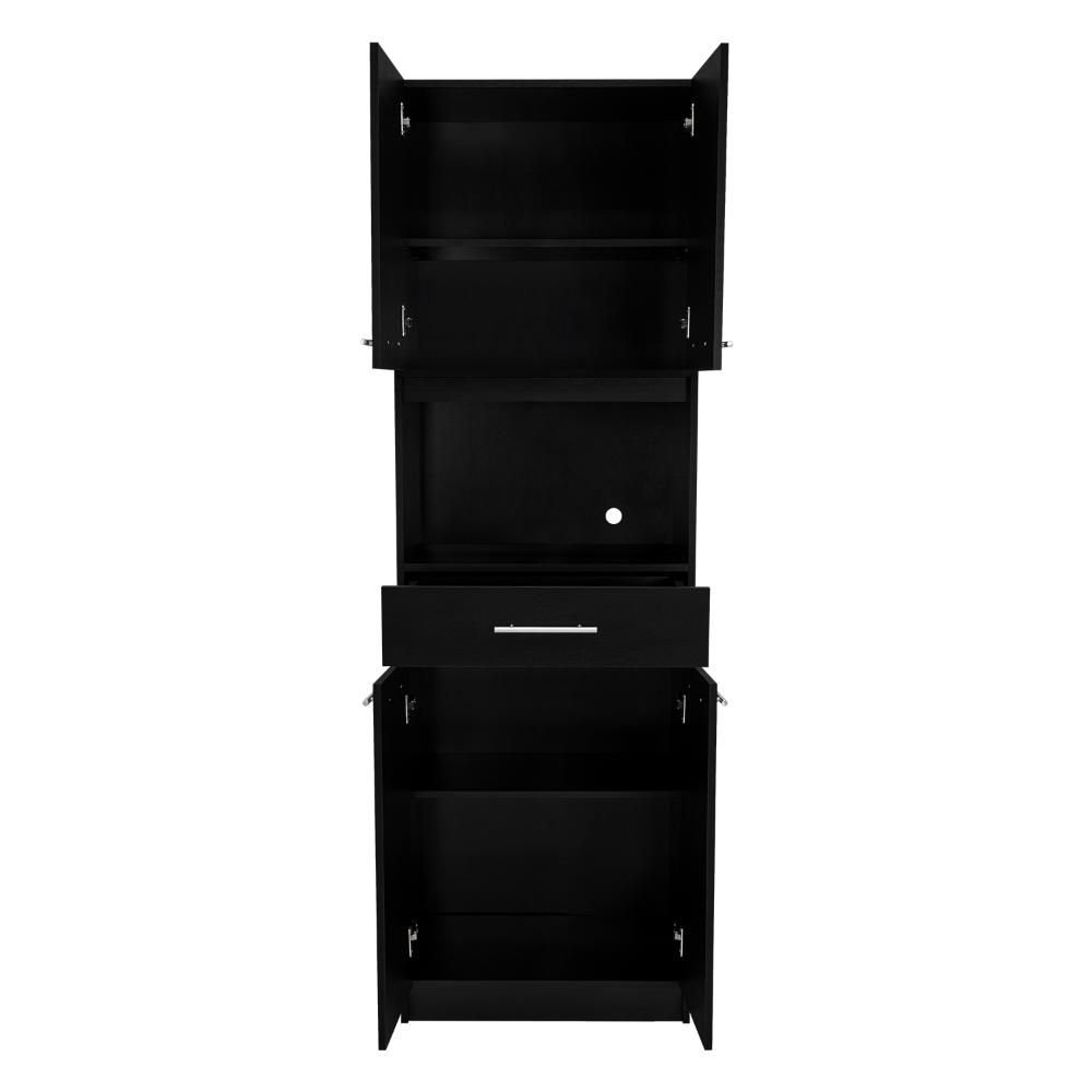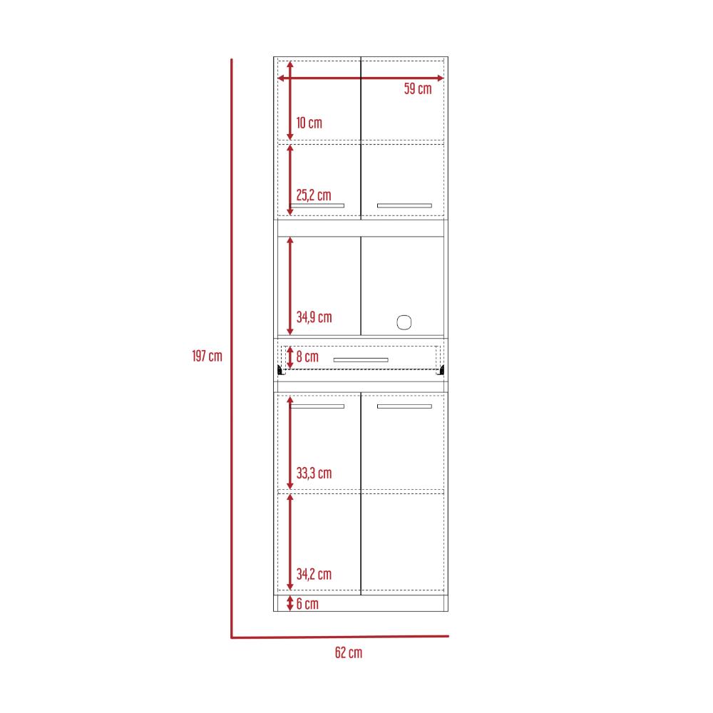 Módulo Microondas, con espacio para horno microondas, 4 puertas abatibles, compartimientos superiores e inferiores para guardar alimentos, utensilios de cocina y/u otros, manijas metálicas, 1 cajón central multi-uso correderas deslizables.