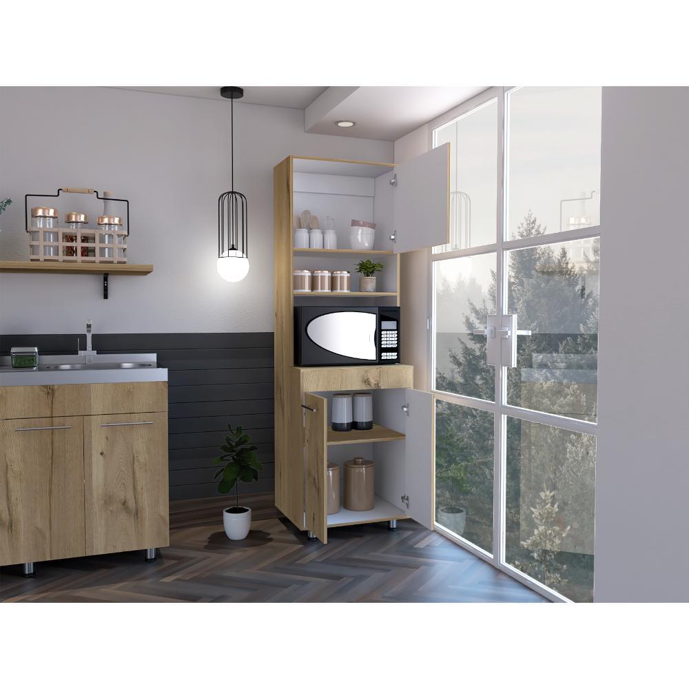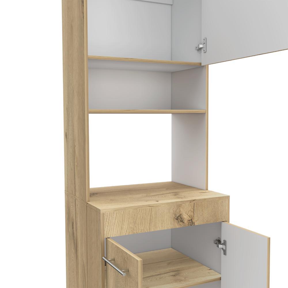 Módulo Microondas Orion, Café Claro y Blanco, con Variedad de Entrepaños y espacio para horno microondas