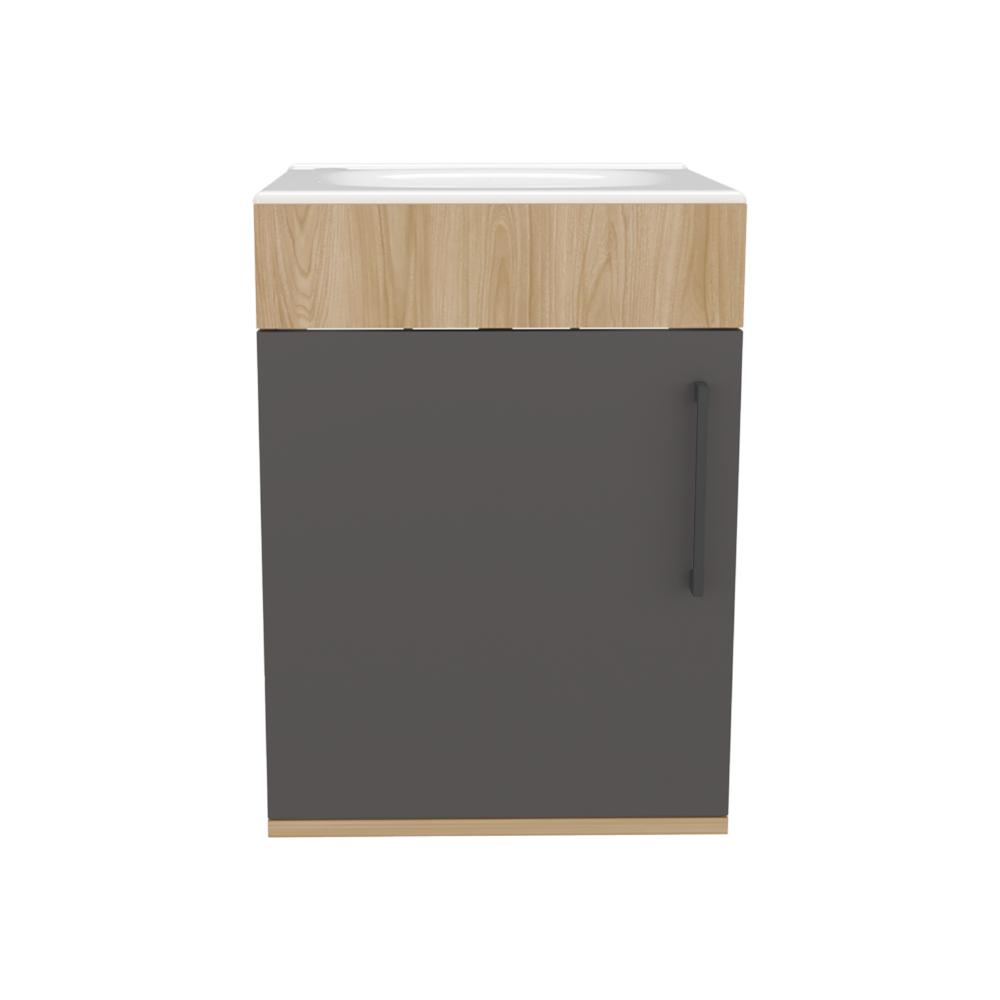 Mueble Lavamanos Oxford, Fresno europeo y Plata Oscuro, Incluye Lavamanos 40cm