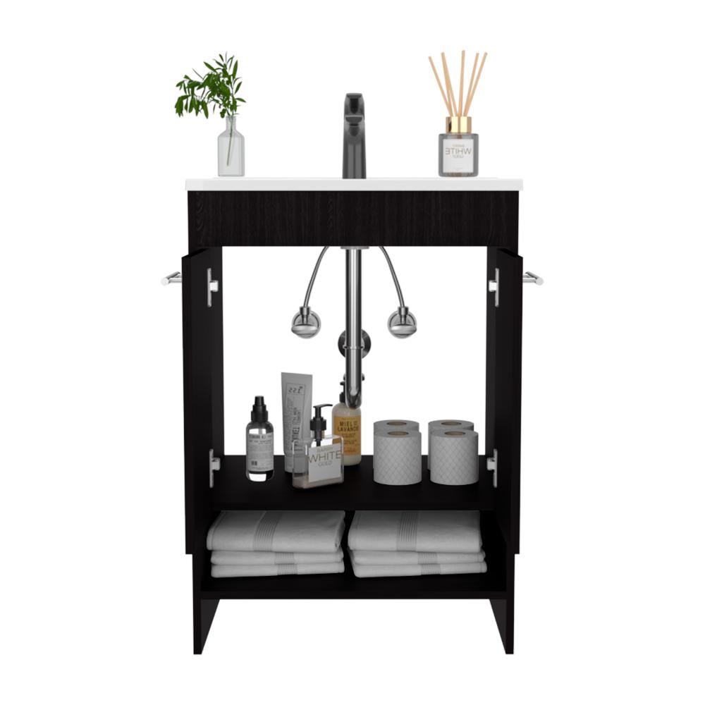 Mueble Lavamanos, con espacio espacio para almacenar objetos, con un entrepaño y 2 puerta abatible