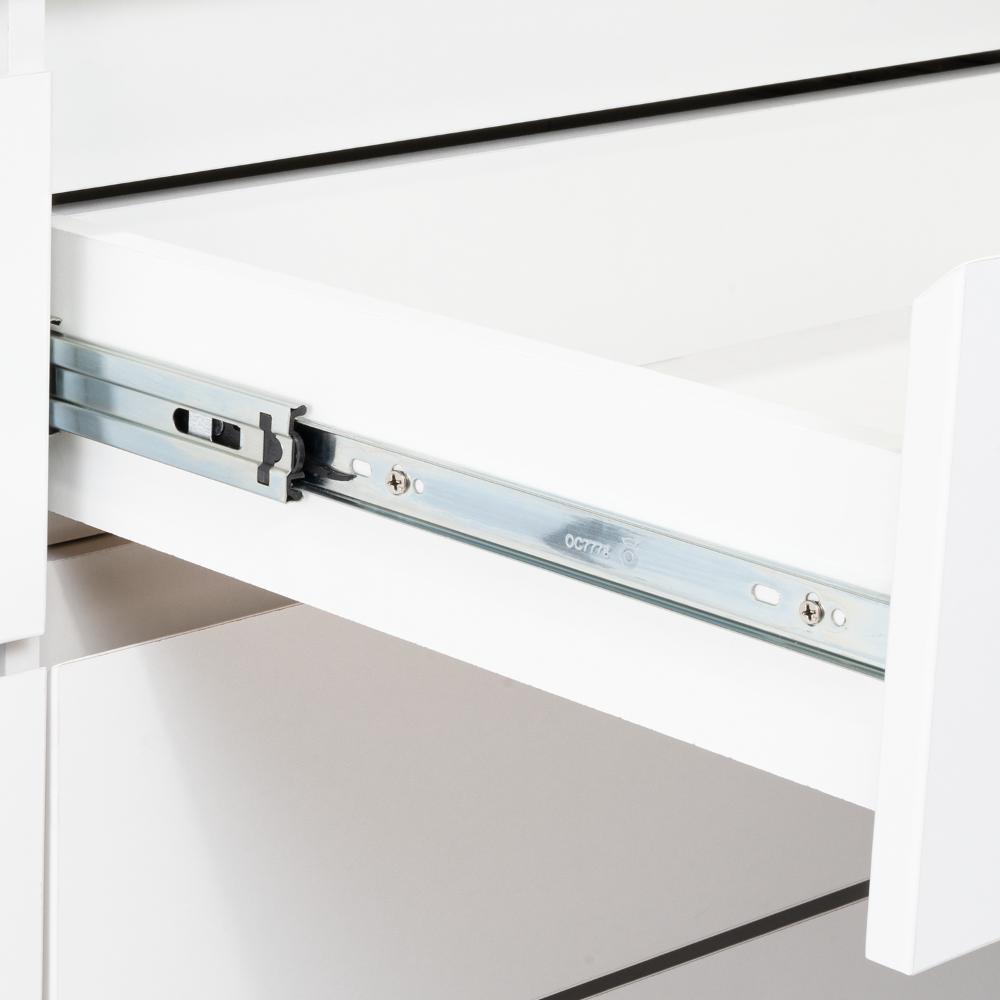 Elaborado en Madera aglomerada MDP, recubierta con láminas melamínicas de excelente calidad, en color Blanco Vainilla.