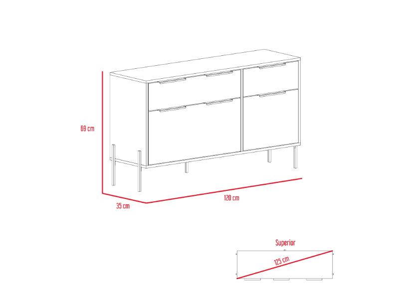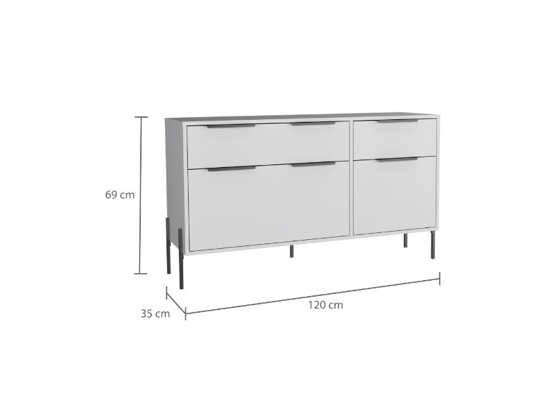 Elaborado en Madera aglomerada MDP, recubierta con láminas melamínicas de excelente calidad, en color Blanco.