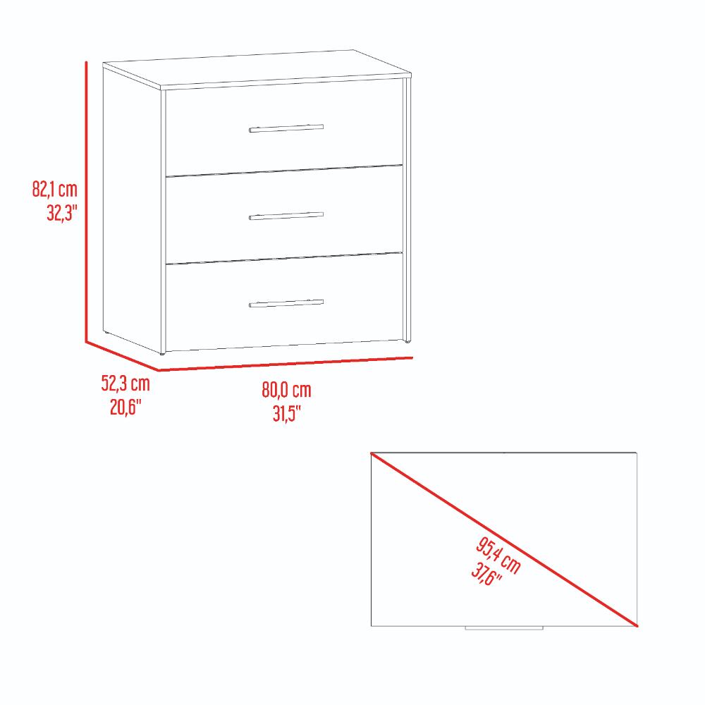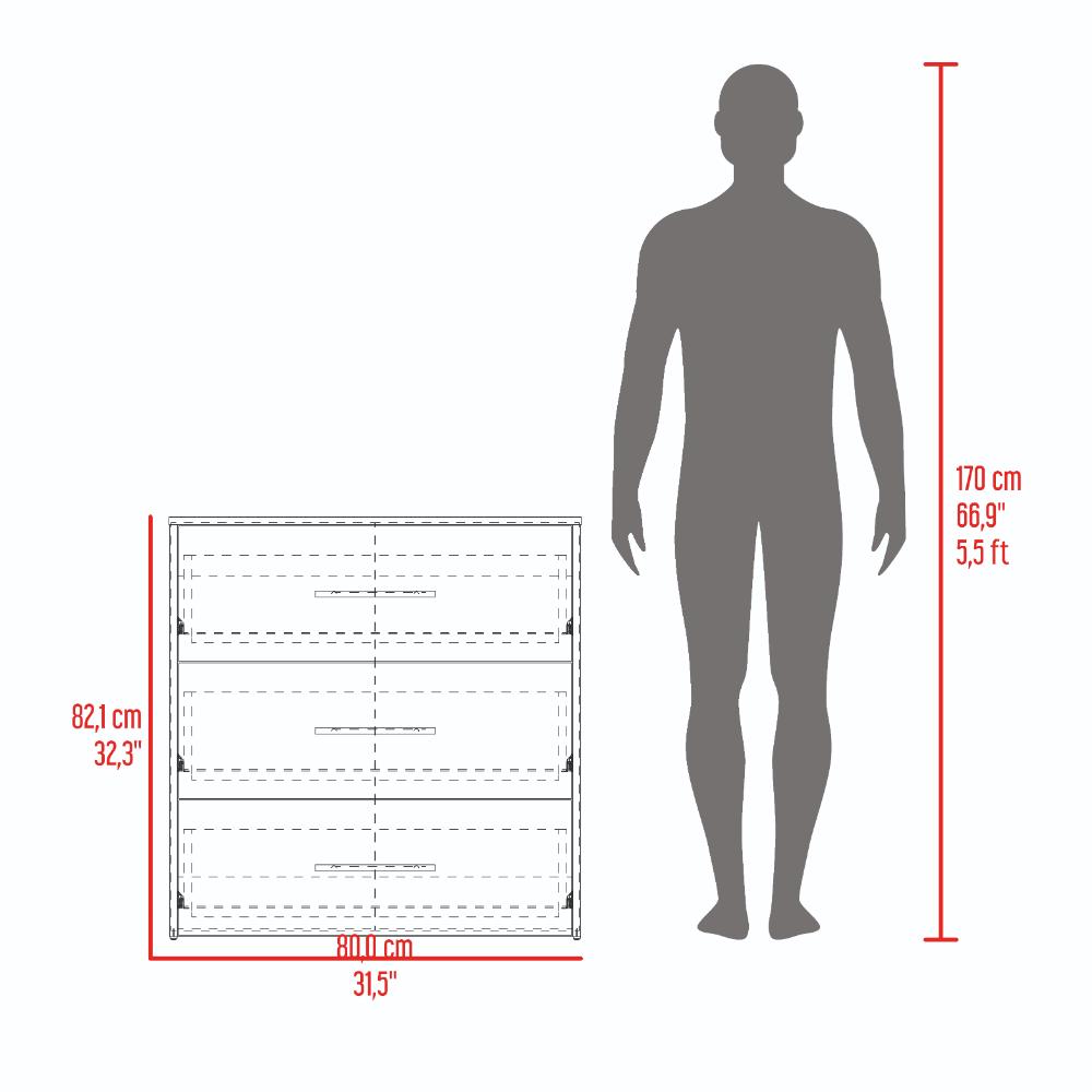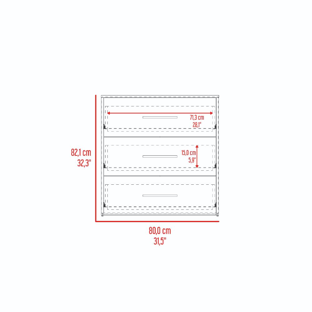Organizador Montano, Milan y Wengue, con tres cajones deslizable para guardar objetos personales