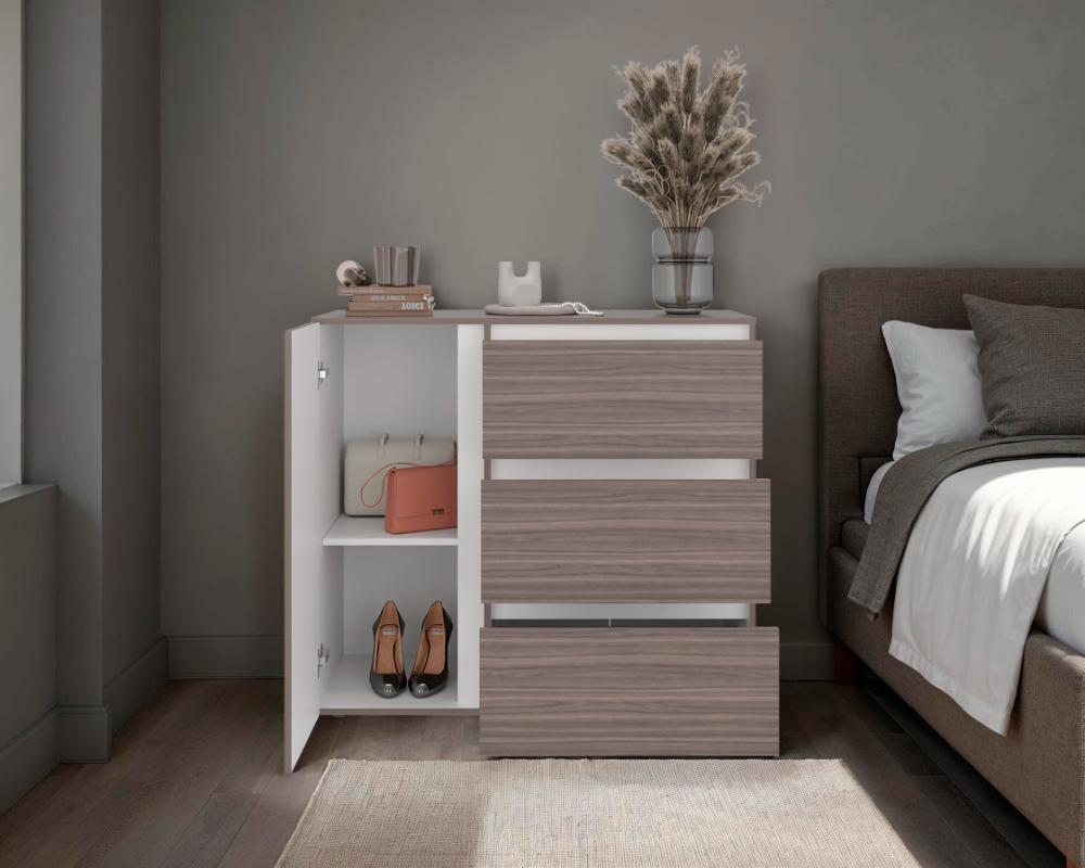 Organizador Niza, Avellana y Blanco, con tres cajones y gran capacidad de almacenamiento