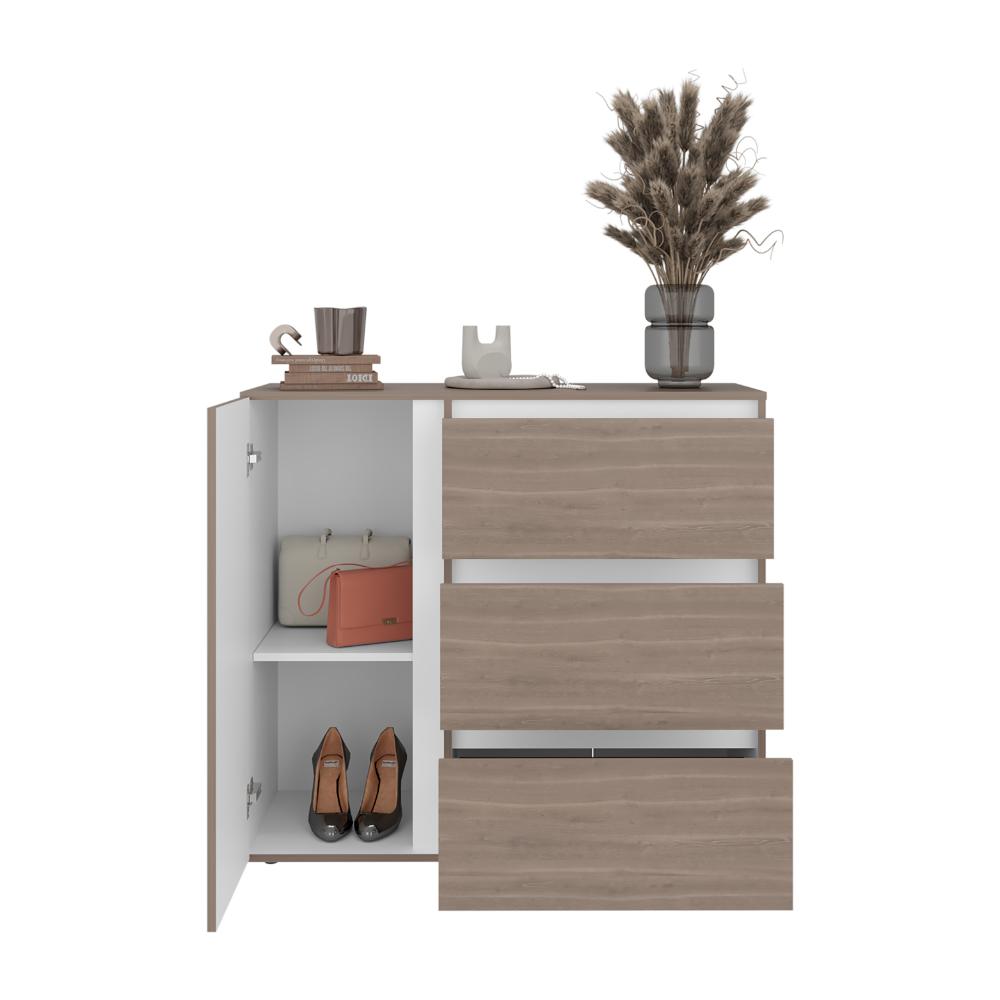 Organizador, con espacio para objetos decorativos, combinación de colores, tres cajones con gran capacidad de almacenamiento, 1 puerta abatible, es de facil instalación.