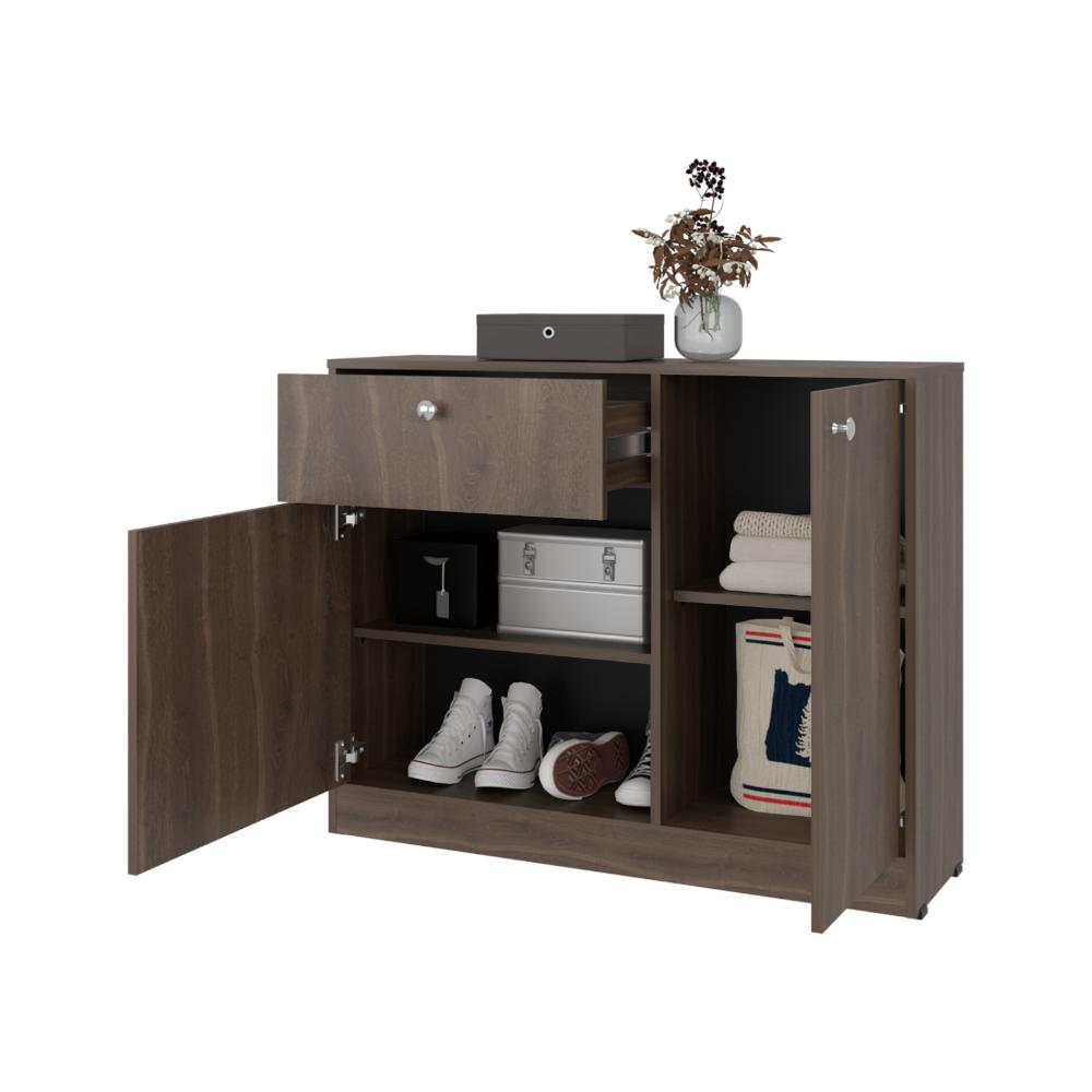Organizador, cuanta con 2 puertas abatibles, 1 cajon multiusos, 2 entrepaños divisores, deslizadores en U para una facil movilidad, espacio para ubicar objetos, y es de facil instalatación.