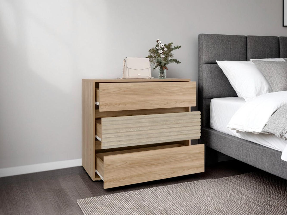 Organizador Wandda,Fresno Europeo y Roble Natural, con tres cajones