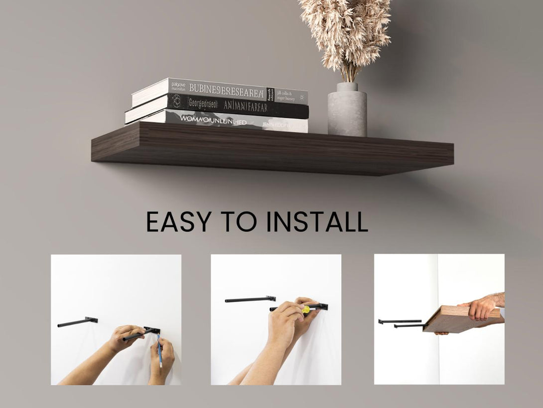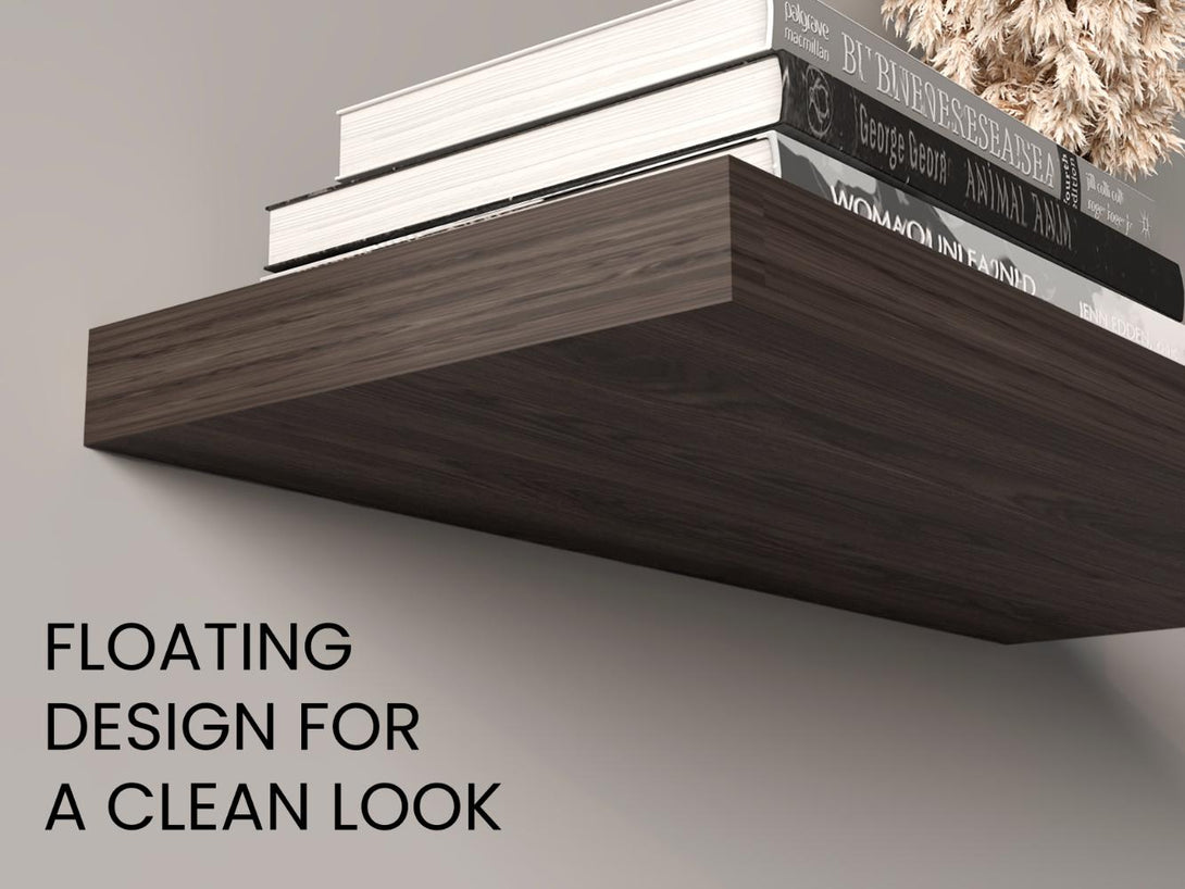 Repisa Flotante, con espacio para ubicar objetos decorativos, equipos de audio video, entre otros. Incluye herraje para su instalación.
