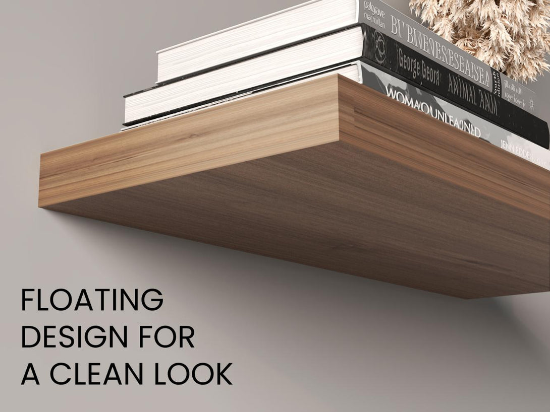 Repisa Flotante, con espacio para ubicar objetos decorativos, equipos de audio video, entre otros. Incluye herraje para su instalación.