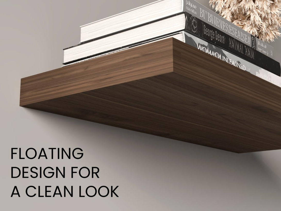 Repisa Flotante, con espacio para ubicar objetos decorativos, equipos de audio video, entre otros. Incluye herraje para su instalación.