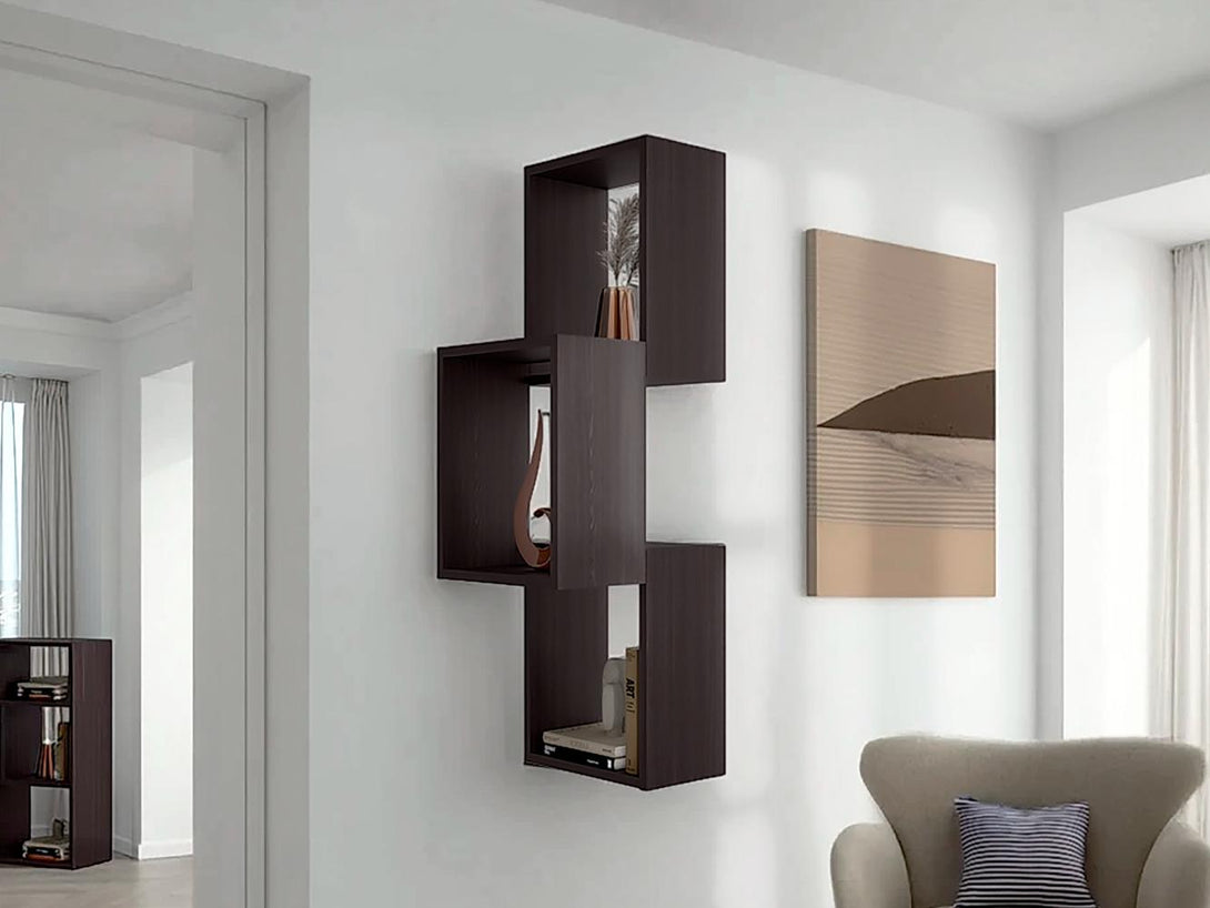 Repisa Pared Seyner, Wengue, Tres cubos con espacio para colocar objetos decorativos ZF