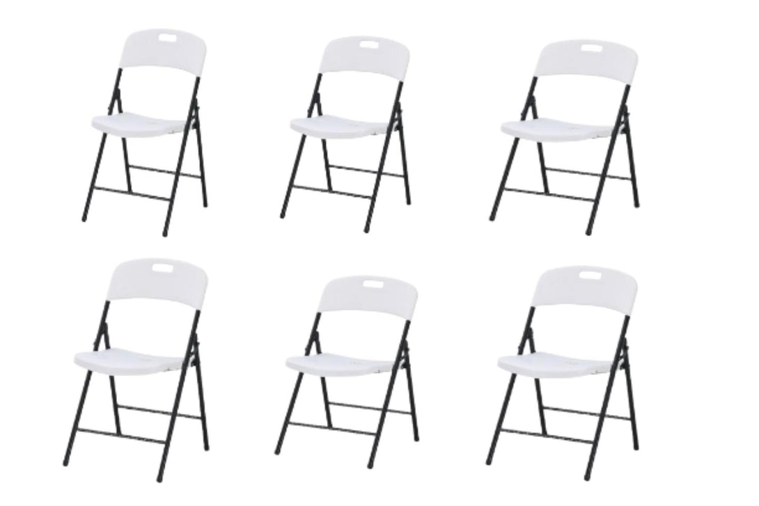 Set de Seis Sillas Plegables Dano, Blanco, espaldar y asiento en material plastico y patas metálicas
