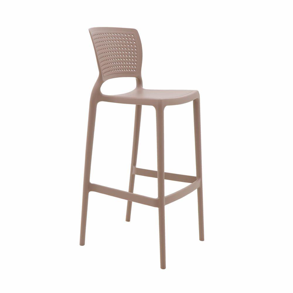 Silla Safira Alta Bar, elaborado en Polipropileno y fibra de vidrio, Perfecta para añadir a cualquier barra o mesa,dale a tus espacios un ambiente cálido y natural, en color Gris.