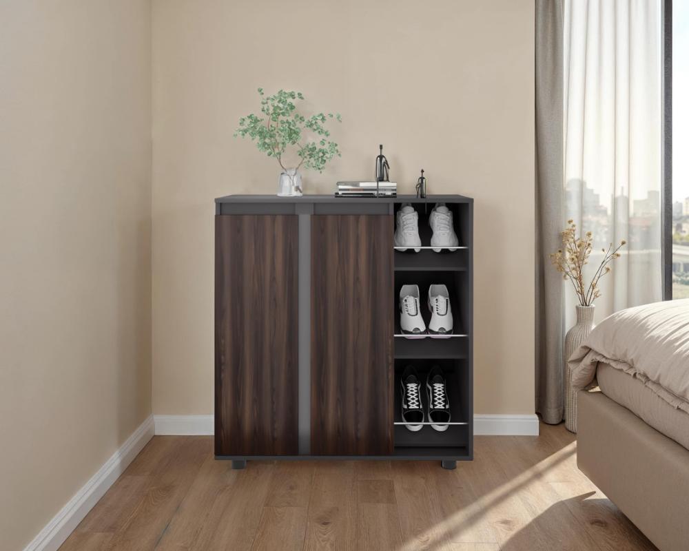 Zapatero Houck, Plata Oscuro y Nogal, con gran espacio para organizar zapatos